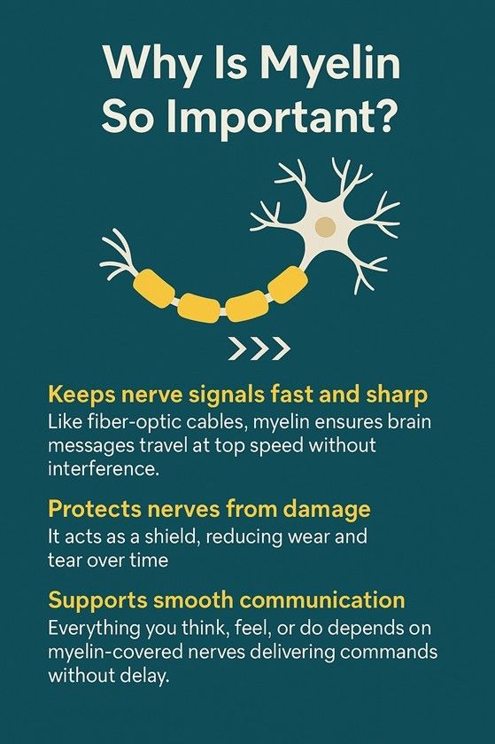 inflammation, oxidative stress, and aging—all common in modern life. When myelin breaks down or is underdeveloped, the result can range from mild issues like brain fog and fatigue to more serious neurological conditions.